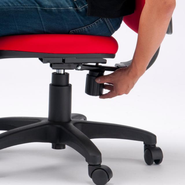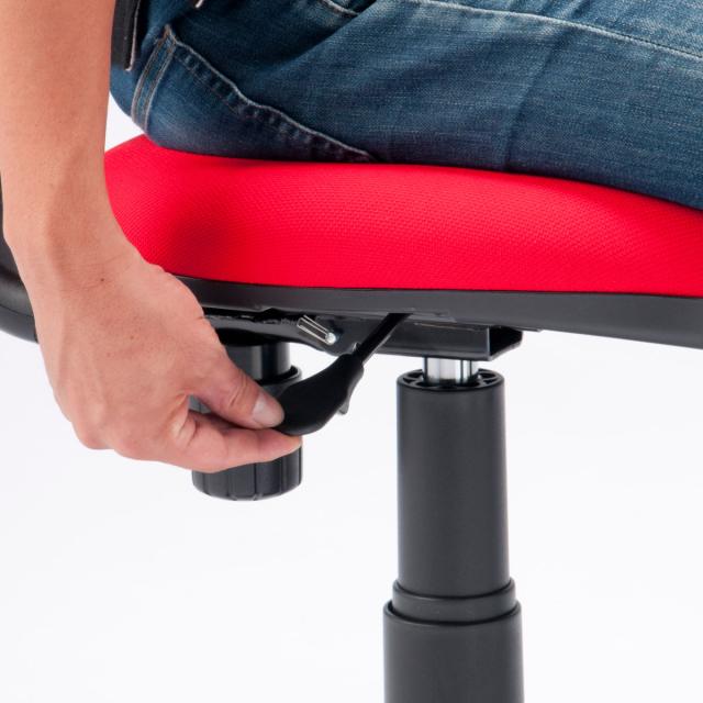 レバーをワンタッチするだけで簡単にできるガス圧リフト昇降機能付きです。体格や机などに合わせて12cmストローク(座面高42〜54cm)の調整が可能です。