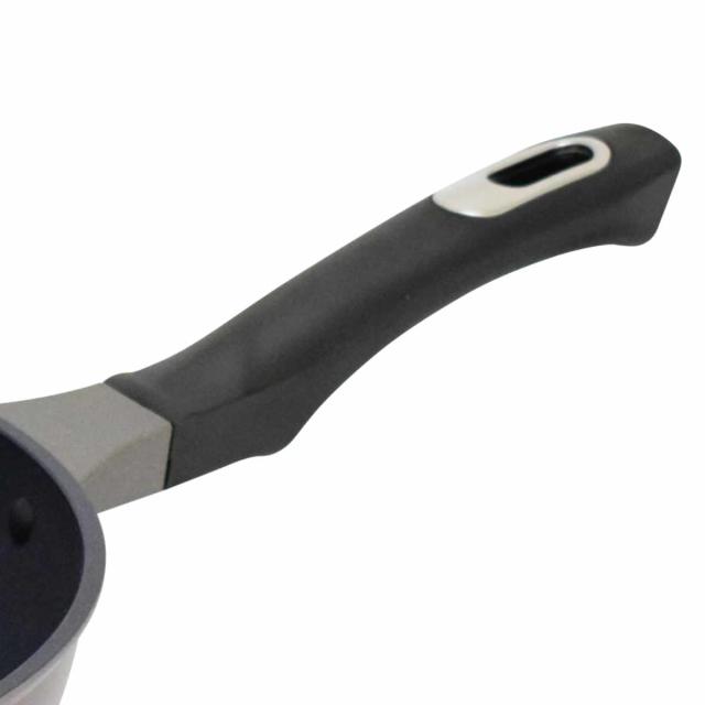 | 材質 | 本体:アルミニウム合金(底厚3.5mm) 底面:鉄・アルミニウム溶射 はり底 持手:フェノール樹脂(キャップ:ステンレス鋼) 表面加工/内面:ふっ素樹脂塗膜加工 外面:焼付け塗装(セラミック塗装) |