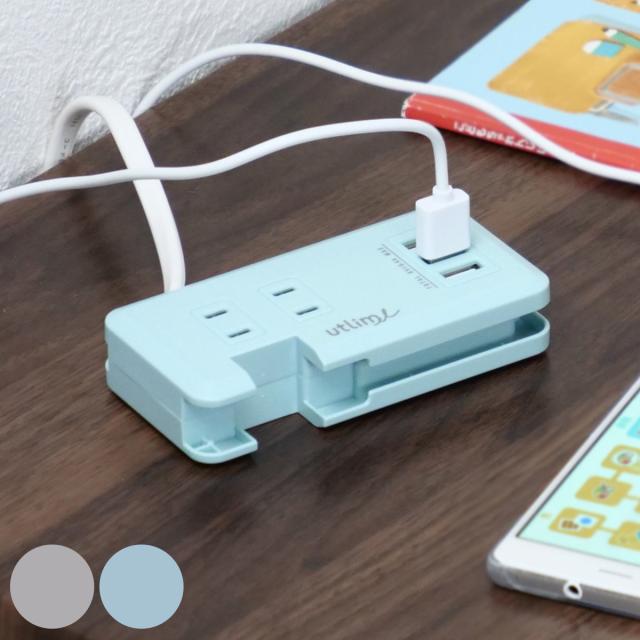 ポータブルコンセント USBポート付 ユートリムエル ( ACアダプター USBアダプター 電源タップ USB充電器 延長コード PSEマーク認証済 コンセント 2口 USB 3ポート コンパクト 持ち運び スマートIC トラッキング防止プラグ 同時充電 )
