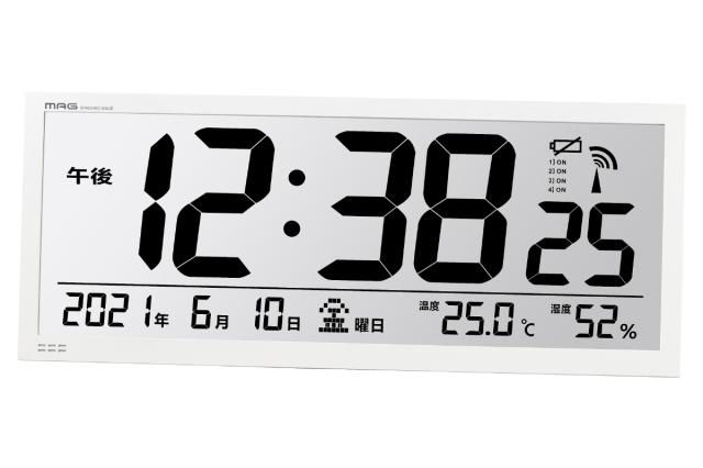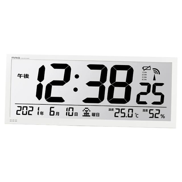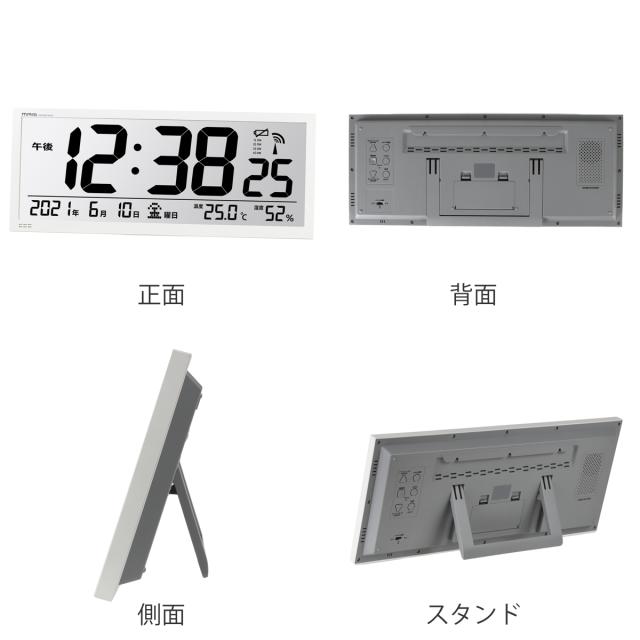 掛け時計 大型 グランタイム MAG 電波時計 デジタル ( 時計 壁掛け時計 かけ時計 置き時計 置時計 とけい クロック 温湿度計 掛け置き両用 温度 湿度計 乾燥対策 カレンダー 熱中症予防 リビング 寝室 シンプル )