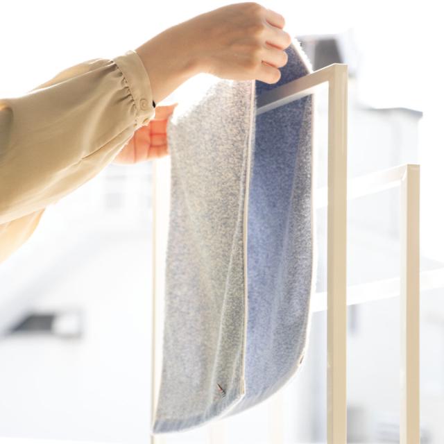 タオルを干す際に「下の方に水が溜まって乾きにくい」というお悩みから生まれた新しいカタチのフェイスタオルです。パイルの長さが短いところは薄く、長いところは厚手になっています。薄手から厚手へと徐々に変化していくグラデーションになっているドライフォルム構造で、乾きやすさと使い心地の良さを追求したこだわりの設計です。