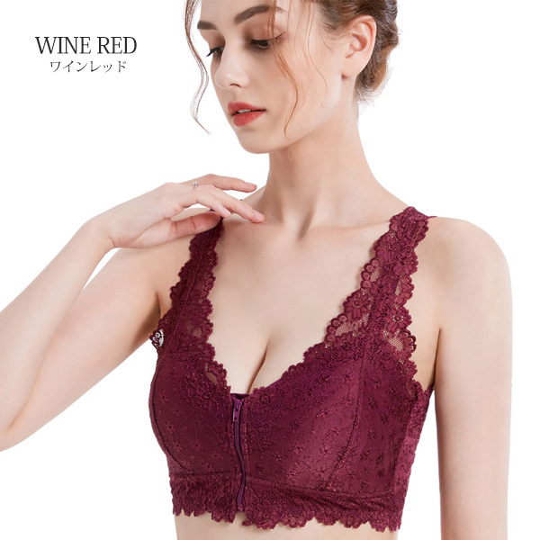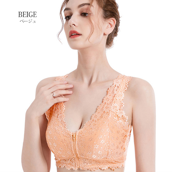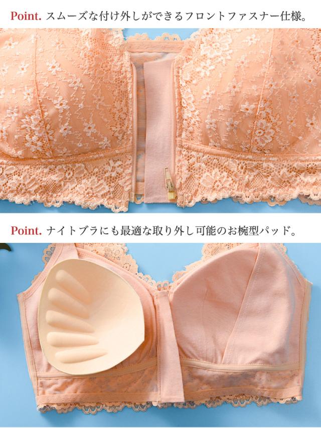 ノンワイヤーブラ ナイトブラ フロントファスナー 育乳 ノンワイヤー ブラジャー 快適 バストケア 下着 レース メール便のみ送料無料2