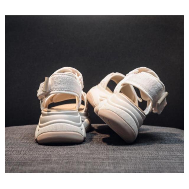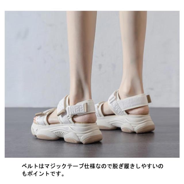 | ボリューム感ある厚底デザインがコーデのアクセントになったスポーツサンダル。 インソールはクッション性に優れたふかふかな履き心地で、一日中はいていても疲れにくく快適です。 ベルトはマジックテープ仕様なので脱ぎ履きしやすいのもポイントです。 厚底仕様でスタイルアップ効果も期待◎ スポーティー感を抑えたデザインだから、デニム合わせはもちろん、柄スカート・カットソーワンピ合わせでカジュアルMIXに着こなすのがおすすめです。 | |