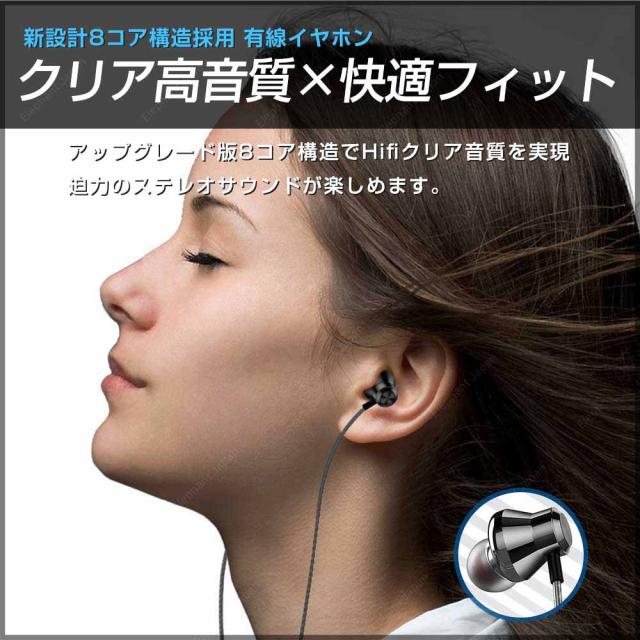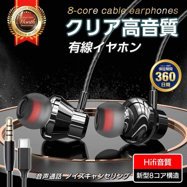有線イヤホン 高音質 Type-C 3.5mm 新型8コア構造 イヤホン 有線 重低音 イヤホン マイク付き スマート 高品質 高性能