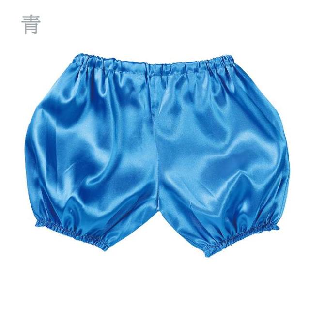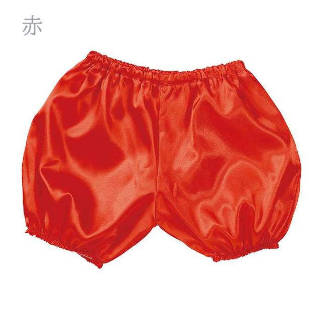 ソフトサテン生地のかぼちゃパンツ。カラーは、赤(4521718150550:15055)、青(4521718150567:15056)、黄(4521718150574:15057)、白(4521718150581:15058)、黒(4521718150598:15059)、です。