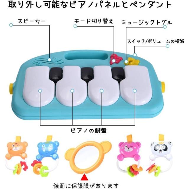 【感覚発育に役たつ】かわいい動物のペンダントとピアノは赤ちゃんの注目を集めることができます。そして、それを取り外してプレイすることができます。視覚、触覚、音を通して赤ちゃんの感覚を刺激するのに役立ちます。