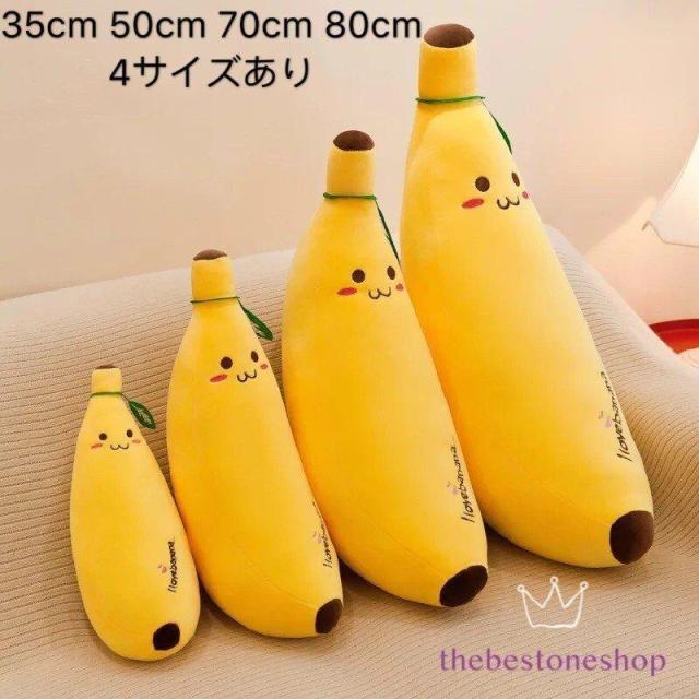 バナナぬいぐるみ 抱き枕 かわいい おもちゃ イヌ インテリア 寝そべり 抱きまくら 果物抱き枕 柔らか ふわふわ 縫い包み 大きい 子供の日 誕生日プレゼント ギフト イベント景品 撮影道具 置物 店飾り キングサイズ 4サイズ選べる 35CM 50CM 70CM 80CM
