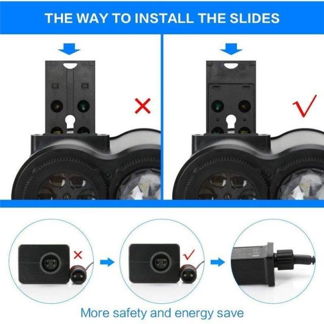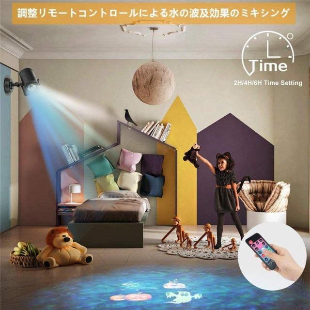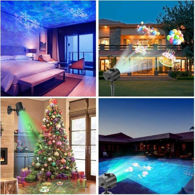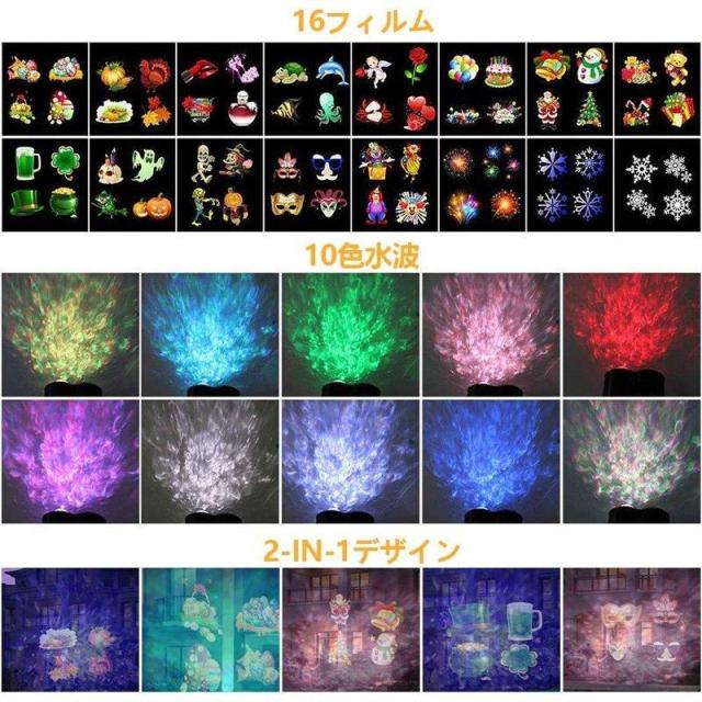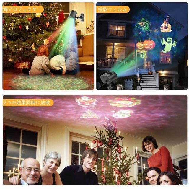 海洋ライトと投影フィルムを結びつけるタイプのプロジェクターで、16個のランプパターンを搭載しており、自由、簡単に交換できます。またパターンを変更することで、ランプが自動で切り替わり、綺麗で楽しい雰囲気が作り出せます。投影ランプの投影距離は約20メートルまでで、壁や庭に絵柄を投影させることができます。