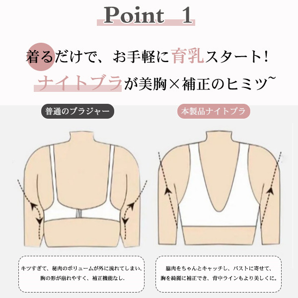 ポイント超超祭利用可 ナイトブラ 50代 40代 ブラジャー シームレス ノンワイヤー パッド付き 取り外し可能 下着 育乳 スポーツ レディース 脇肉補正 肌着
