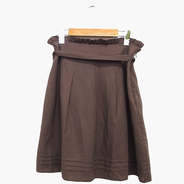 【中古】ジャイロ JAYRO フレア スカート 膝上 ミニ ウール混 無地 シンプル フリル タック ウエストリボン M
