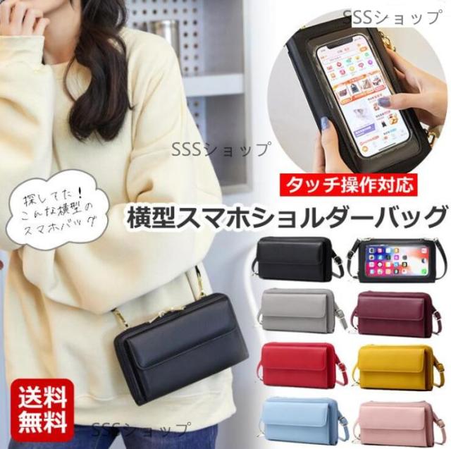 スマホバッグ 横型 スマホポーチ スマホショルダー タッチ操作対応 スマホポシェット 多機能 スマホポーチ 斜め掛けミニバッグ