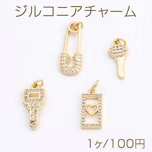 高品質ジルコニアチャーム キー 長方形型 カブトピン ゴールド(1ヶ)