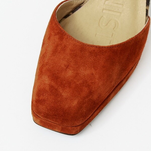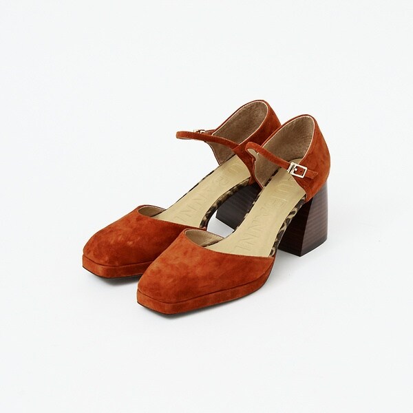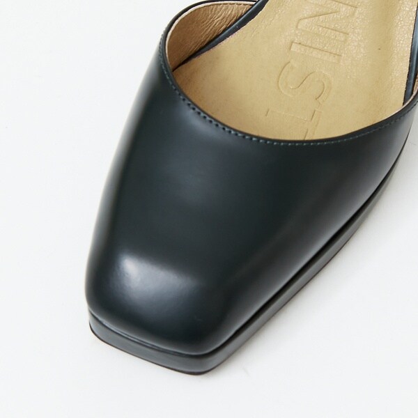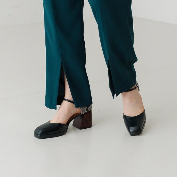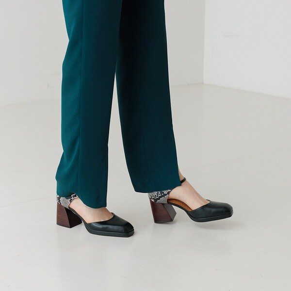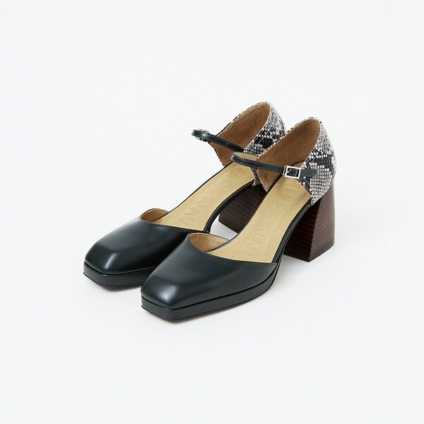 ストーム(つま先部分の底の厚み)付きでクラシカルな雰囲気のボリュームヒールパンプス。