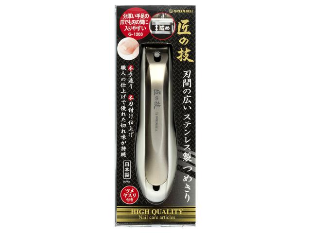 グリーンベル 匠の技 つめきり 分厚い爪 変形爪 刃間の広い 日本製「刃間の広いステンレス製つめきり G-1203」