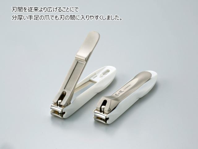 ●刃間を従来より広げることで手のつめはもとより、足のつめも切りやすくなりました。