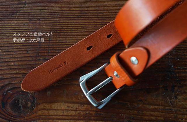 - オンオフ兼用のベルトとして購入。革の匂いが素敵で、注文時に指定した長さも私にピッタリでした。ベルト固定用の2本のネジに刻印されたロゴの向きが完璧に揃っていたことにも感謝。スタッフさんのベルトへの愛情が感じられました。