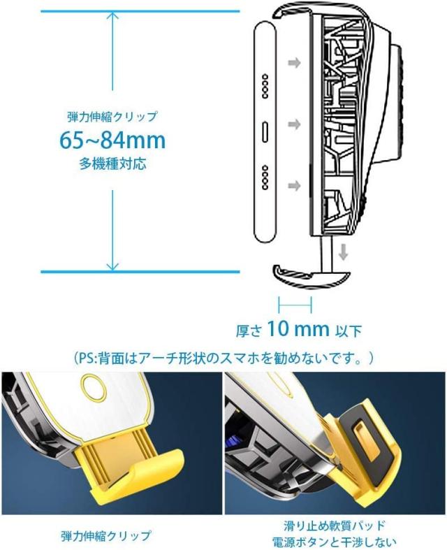 【弾力伸縮クリップ】厚さ10 mm以下、幅65〜84 mmのiPhone / Androidスマートフォン用のすべてのモデルに適用可能発熱を気にせずにさまざまなゲームをプレイできます。