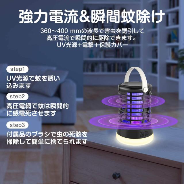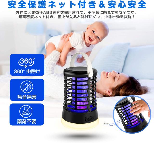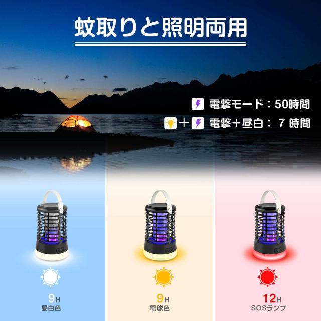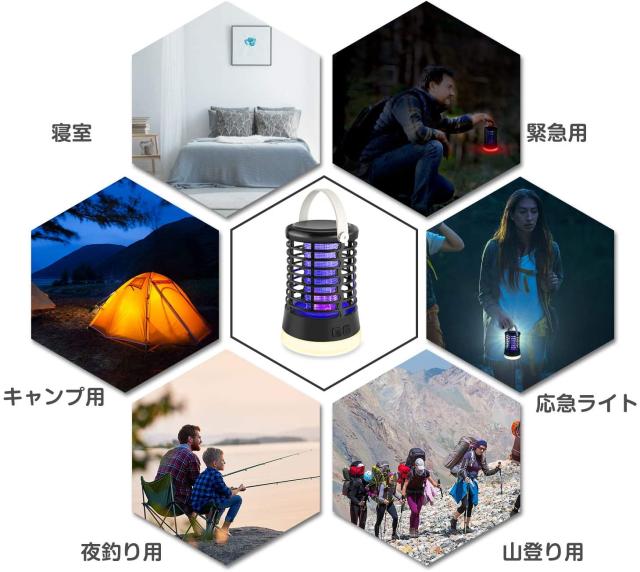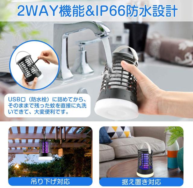 電撃殺虫器 LEDランタン IP66防水 USB充電式