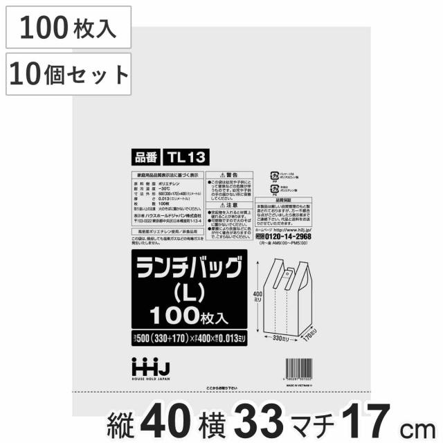 レジ袋 40×33cm マチ17cm 厚さ0.013mm ランチバッグ L 100枚入り 10袋セット ( ポリ袋 手さげ袋 100枚x10 買い物袋 マチ付き 持ち手付き カサカサ ゴミ袋 買い物 袋 バッグ 持ち帰り 小分け袋 )