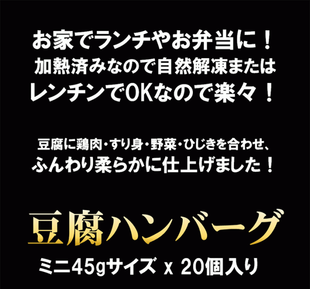 【レンジで温めるだけの簡単調理】豆腐ハンバーグ 900g (45g×20個) はんばーぐ 牛肉 おかず おつまみ 総菜 冷凍 お弁当