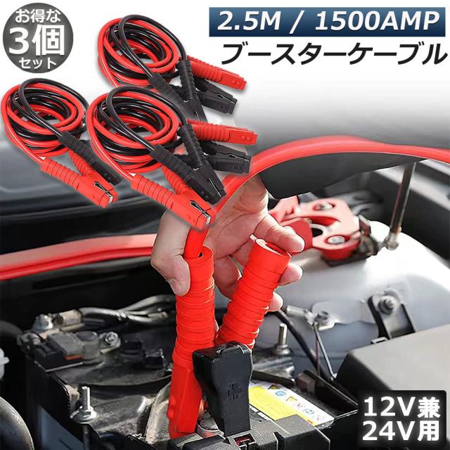ブースターケーブル 3個セットジャンパーケーブル 2.5M 1500A 安全性 耐久性 耐熱防寒 幅広い車種 12V 24 バッテリー上がり 電気 緊急 軽自動車 普通車 ワニ口クリップ