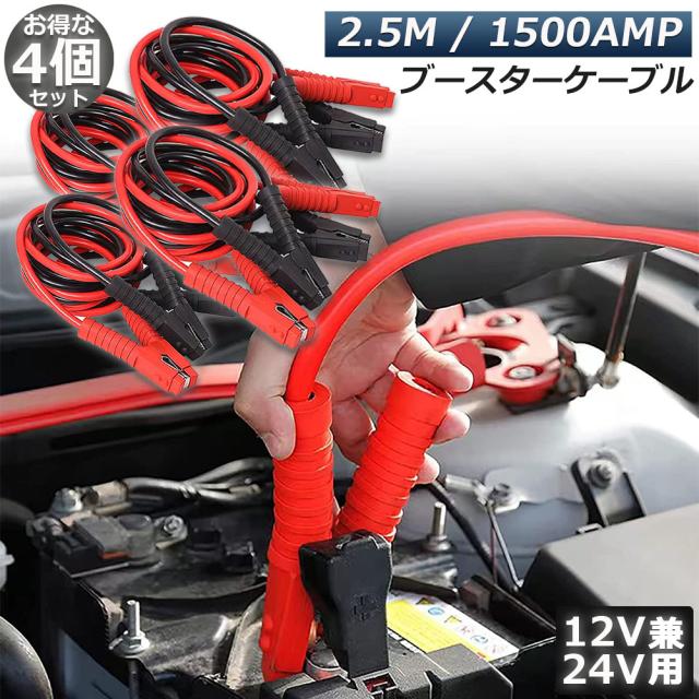 ブースターケーブル 4個セットジャンパーケーブル 2.5M 1500A 安全性 耐久性 耐熱防寒 幅広い車種 12V 24 バッテリー上がり 電気 緊急 軽自動車 普通車 ワニ口クリップ