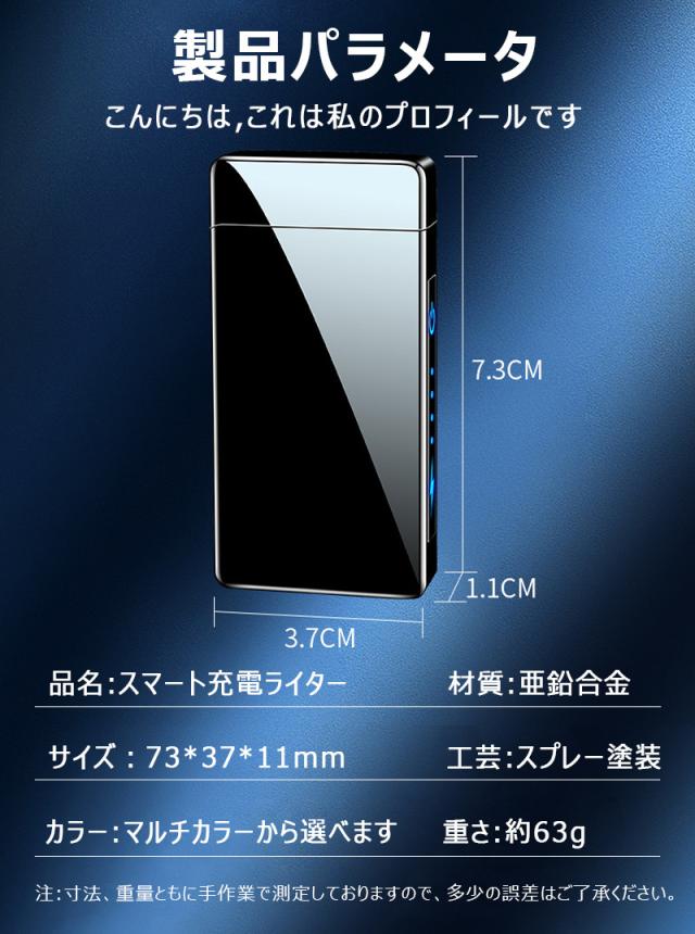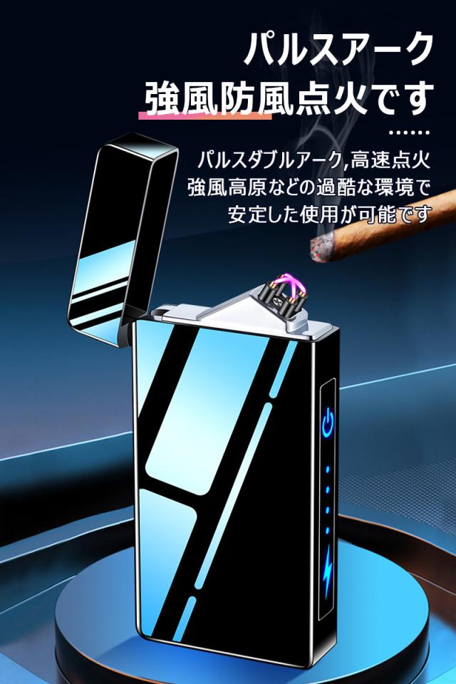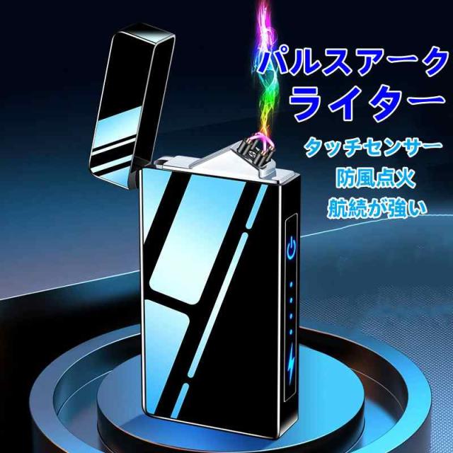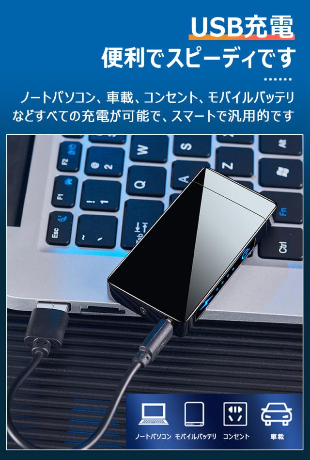 電子ライター USB充電式 パルスアーク プラズマ 電気 ライター バッテリー表示 タッチセンサー 航続が強い 防風点火 小型 充電式 防風 軽量 薄型 プレゼント