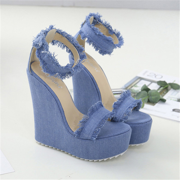 サンダル レディース デニムサンダル ハイヒール デニム かかとあり ヒール15cm ストラップ アンクルストラップ 厚底 ウェッジソール 厚底サンダル かわいい 大人 韓国 おしゃれ カジュアル 美脚 夏 厚底ウェッジサンダル 脚長効果 di060zbzbc9