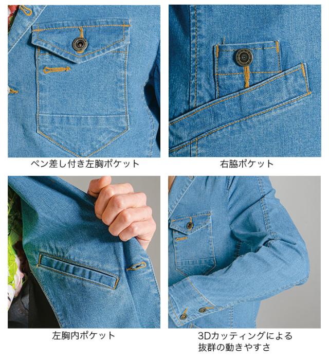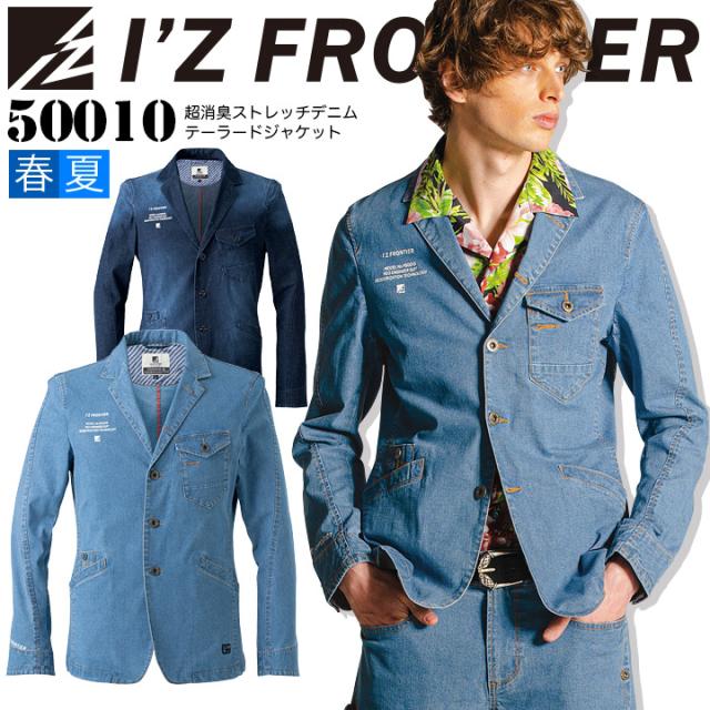 アイズフロンティア 超消臭 ストレッチ デニム テーラードジャケット 50010 春夏 ブルゾン ジャンパー メンズ 作業服 作業着 I’Z FRONTIER
