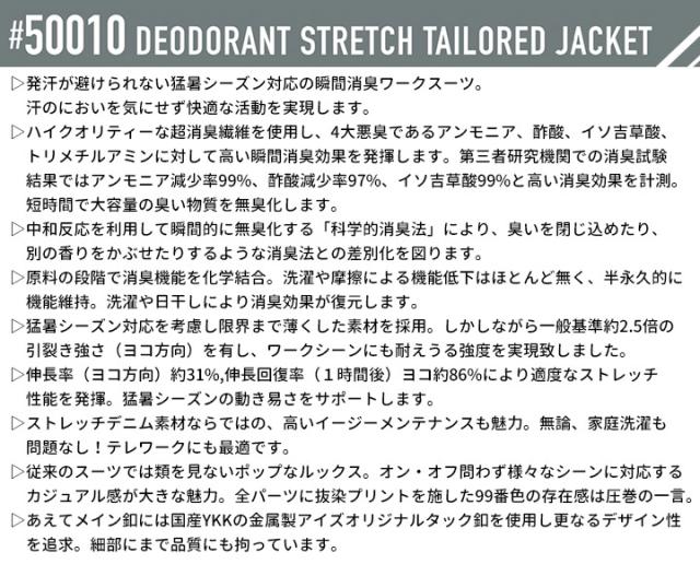 I’Z FRONTIER 超消臭 ストレッチ デニム テーラード ジャケット 50010
