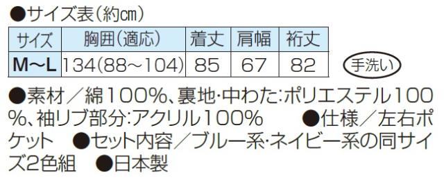 ●素材/綿100%、裏地・中わた:ポリエステル100%、袖リブ部分:アクリル100%