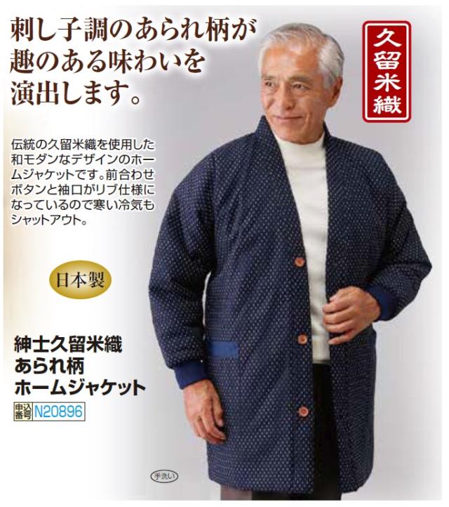 半纏 メンズ シニア 秋冬 日本製 紳士久留米織あられ柄ホームジャケット 紺色 上着 紳士服 男性 ホームガウン はんてん どてら 部屋着 中わた ちゃんちゃんこ あったか 防寒 ネイビー 中綿 暖かい ルームウェア リブ袖 ファッション 敬老の日 natu p20896