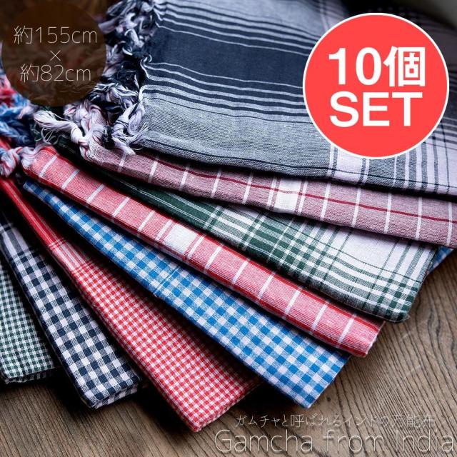 【お得な10個セット アソート】ガムチャと呼ばれるインドの万能布【約155cm×約82cm】 / セット、布、台布巾、台ふきん、ダスター、小さな布、キッチンクロス、ナフキン、ランチョンマット、日除け、風よけ、万能布、ショール、スカーフ 布とファブリック 【インドとアジアンの布