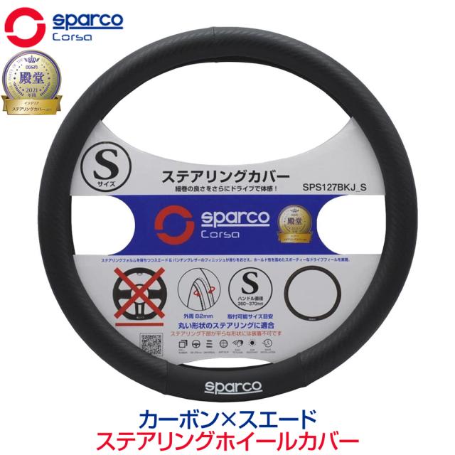 ハンドルカバー 軽自動車 Sサイズ おしゃれ 普通車 スパルコ コルサ ステアリングカバー カーボン柄 SparcoCORSA ステアリングカバー カーボン ブラック Sサイズ SPS127BKJ_S 送料無料