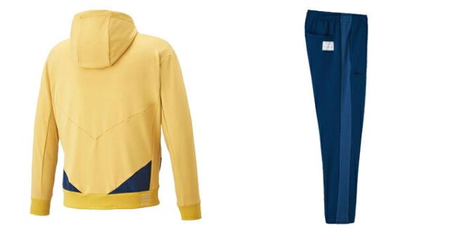 吸汗速乾、UVカット、ストレッチ性があり、ソフトな風合いの裏毛素材を使用したスウェットジャケットとパンツの上下セットです。