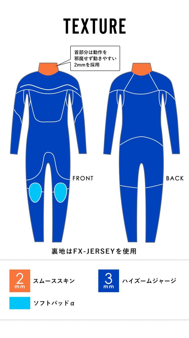 FELLOW ウェットスーツ ロングチェストジップ ジャージ フルスーツ 3mm SS_wet