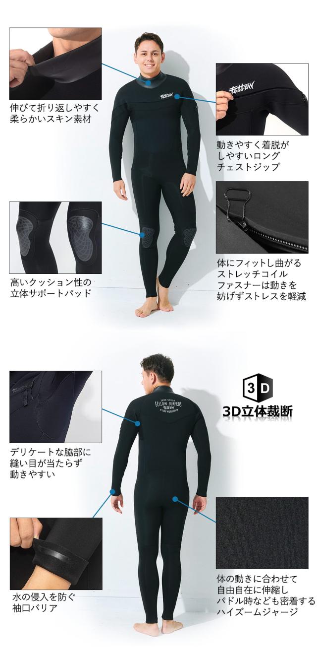 ウェットスーツ メンズ ロングチェストジップ フルスーツ 3mm FELLOW サーフィン ジャーフル ウエット JPSA