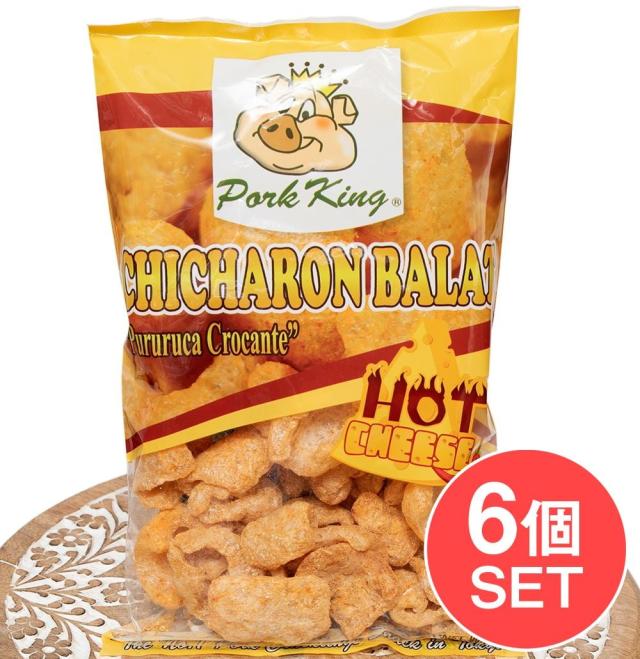 【6個セット】チチャロン バラット - 豚皮の唐揚げ CHICHARON BALAT Hot Cheese - ホットチーズ味 〔Pork-King〕です。セットでお得になっています♪