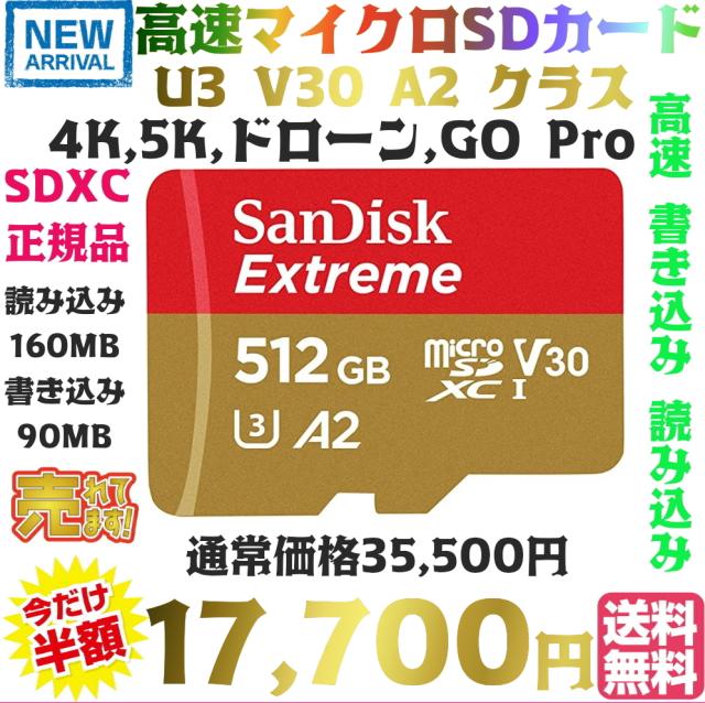 【送料無料・税込み】高速 SanDisk 512GB Extreme マイクロSDカード ハイクオリティ U3 V30 A1 A2 クラス 読込160MB/S 書込90MB/S SDSQXA1-512G-GN6MN 並行輸入品 microSDXCカード サンディスク UHS R W スイッチ switch 動作確認済 海外リテール ドローン 防犯