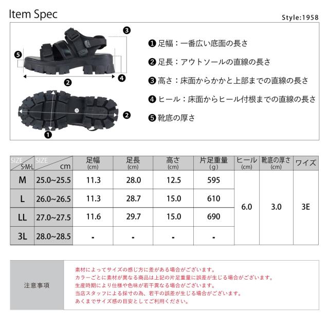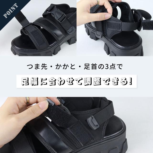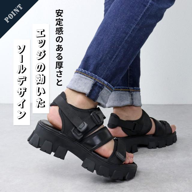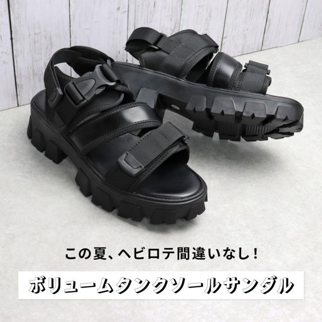 サンダル スポーツサンダル メンズ タンクソール 厚底 ストラップ おしゃれ No.1958 25.0cm〜27.5cm ブラック LOVEHUNTER ラブハンター