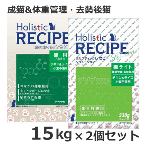 ●2個セット ホリスティックレセピー 7歳までの成猫&体重管理・避妊・去勢後用 猫ライトセット ブリーダーバック 15kg(各1個ずつ) 2個セット
