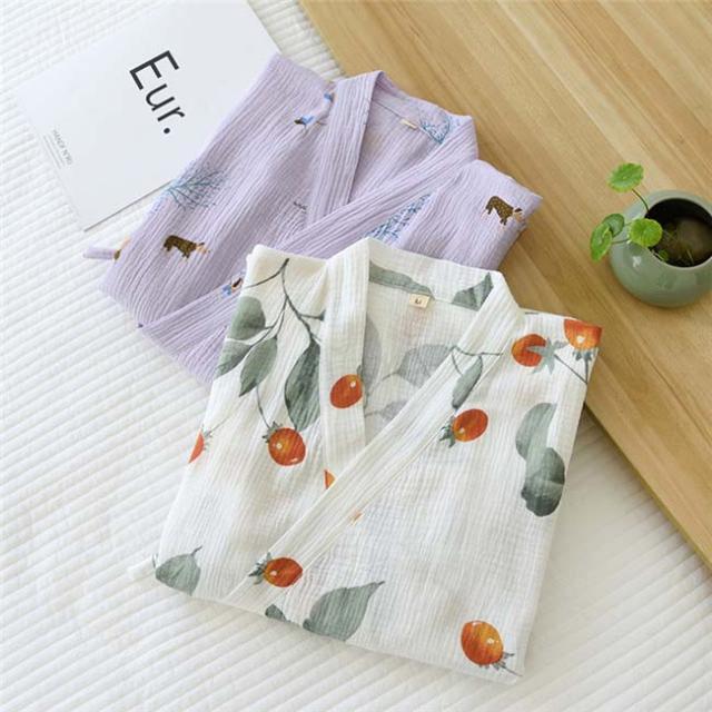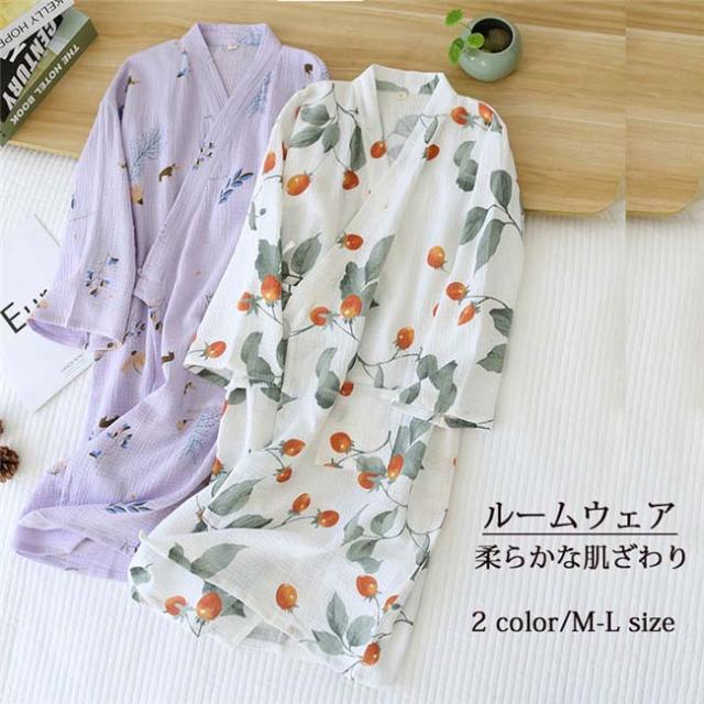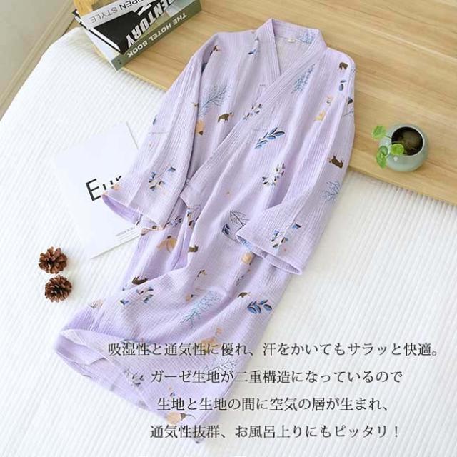 2重ガーゼ 浴衣 ルームウェア パジャマ 寝巻き ガーゼ ガウン お風呂上がり バスローブ レディース ホワイト パープル 綿 前開き 春夏 旅館 温泉 介護 通気性 涼しい 部屋着 お家時間 柔らかい 着心地いい プレゼント dh144c0c0c9