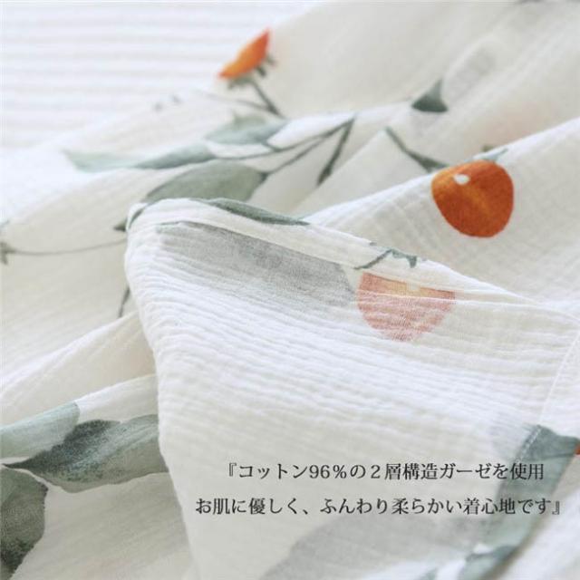 ガーゼ生地が二重構造になっているので生地と生地の間に空気の層が生まれ、通気性抜群、お風呂上りにもピッタリ!