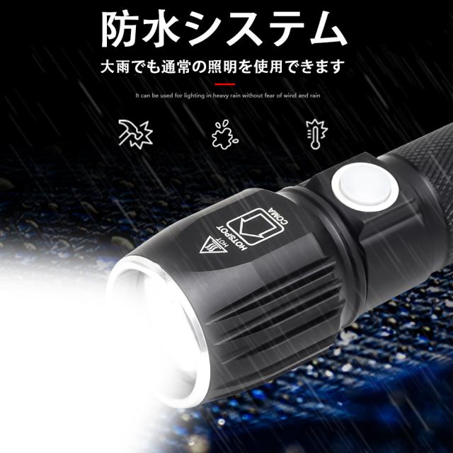 LEDライト 多機能懐中電灯 ハンディライト LED 充電式 超強力 ズーム 多モード 充電池付き 軍用 作業灯 停電 防水 防災対策