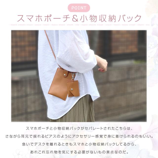 | 商品特徴 | ・【小物収納バック付き】スマホポーチと小物収納バックがセパレートされたこちらは、シーンに合わせて使用可能です。 ・【上品でシンプルなデザイン】どんな服装にも馴染むシンプルなデザイン ・【中身が見やすい】シンプルな設計で取り出し時のわづらはしいを解消 ・【手軽さはもう手放せない】 お金だけ持ってお出かけするのにちょうどいいサイズ。シンプルで洗練されたデザインは、どんなコーデにもバッチリ合います。 ・【マグネットスナップボタン採用だから安心】シンプルなデザインを保ちつつ機能性も開閉はしやすいです。 ・【上質なPUレザー採用】しっとりとした肌触りが特徴の上質なPUレザーを厳選して使用しております。 |