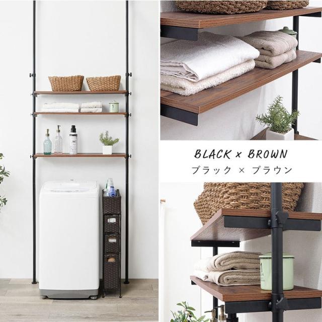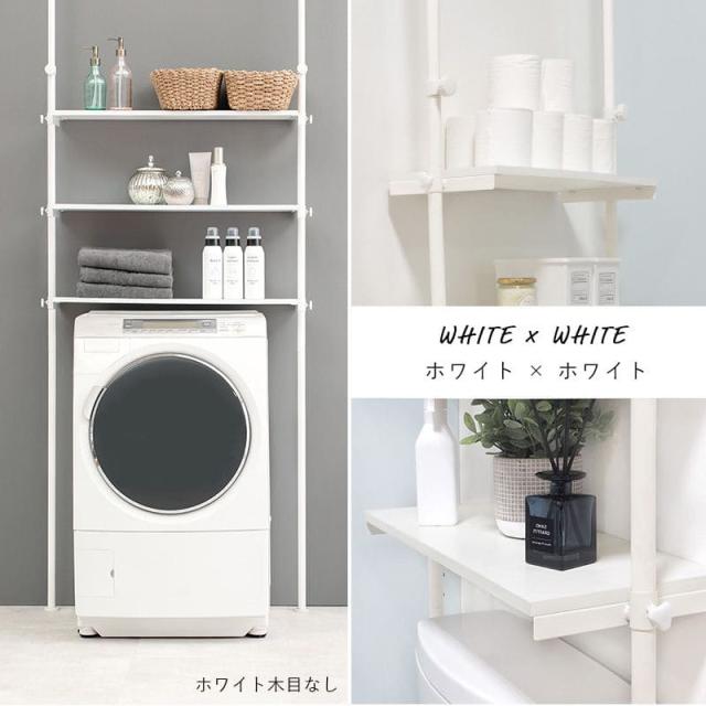 後付け つっぱりラック トイレ 洗濯機 洗面所 棚付き 壁面収納 ランドリー ランドリー収納 ラック コンパクト 隙間 突っ張り式