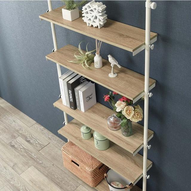 壁面収納 つっぱり収納 木製 アイアン リビング 玄関 間仕切り 突っ張り棒 コンパクト 縦長 軽量 ハイタイプ 観葉植物 賃貸 木