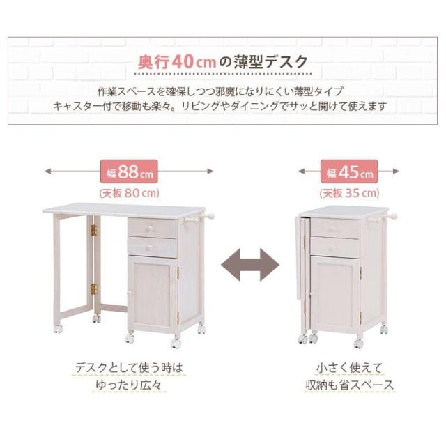 パソコンデスク 折りたたみ キャスター 収納 机 木製 スリム コンパクト 省スペース ハイタイプ ワゴン チェスト 引き出し おしゃれ 幅90 奥行40 小さめ