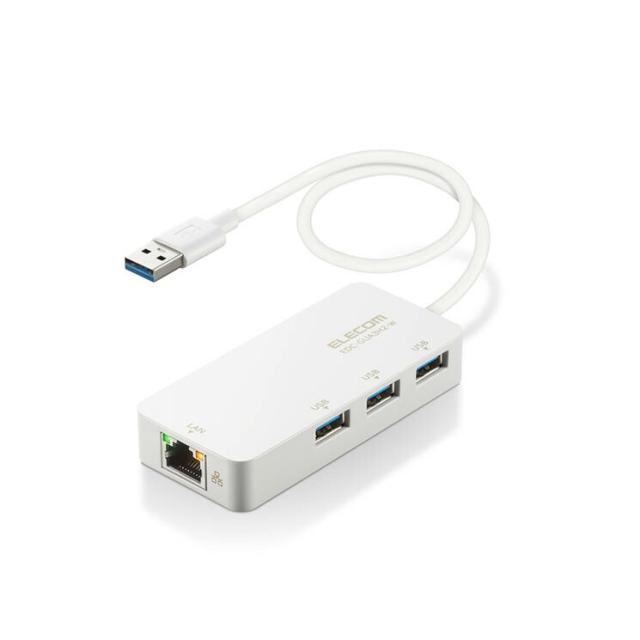 エレコム LANアダプター 有線 タイプA Giga USBハブ付 USB-A×3 USB3.2 Gen1 3.1 Gen1 3.0 10 100 1000Mbps 【Windows Mac対応】 ホワイト ELECOM