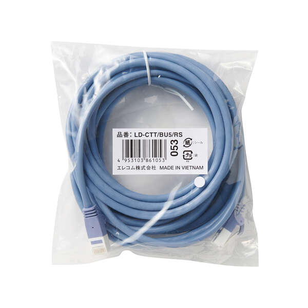 プロテクタと新素材コネクタ採用のダブル構造で、通常の使用環境では絶対にツメが折れない!※100BASE-TXや1000BASE-Tといった環境で安定したデータ転送が可能なカテゴリー5E対応LANケーブル。※1000回の屈曲検査に合格(当社検証)■カラー:ブルー ■インターフェイス:RJ-45コネクター ■環境配慮事項:EU RoHS指令準拠(10物質) ■規格:Cat5E対応(10BASE-T/100BASE-TX/1000BASE-T対応) ■伝送速度:1Gbps ■伝送帯域:100MHz ■ケーブル長:5m ■ケーブル太さ:5.35mm ■芯数:8芯 ■結線方式:ストレート結線 ■ヨリ対芯線(ツイストペアケーブル):○ ■シールド:無し(UTP仕様) ■外部シース(被膜)材質:PVC ■導体構成:ヨリ線(24AWG) ■コネクタ有無:両端コネクター付 ■モールド加工コネクタ:○ ■スリムコネクタ:○ ■爪折れ防止カバー付コネクタ:○ ■パッケージ形態:ポリ袋(環境配慮タイプ) ■爪の折れないコネクタ:○ ■PoE:○